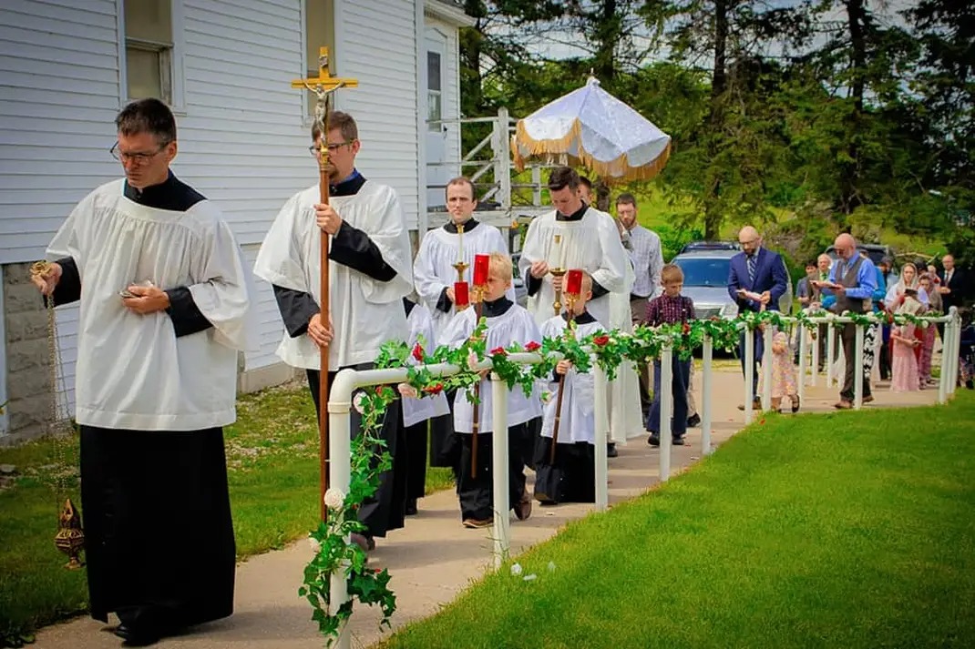 Welcome to Saint Joseph’s Roman Catholic Church located in Harmony, MN. The clergy and parishioners of St. Joseph’s adhere firmly to the unchangeable Catholic Faith as taught by all true Popes, from St. Peter to Pope Pius XII. Because of our faithfulness to the Catholic Church of the ages, we reject the Modernist church of Vatican II with all its teachings, liturgical rites, and disciplines. We recognize that John XXIII, Paul VI, John Paul I, John Paul II, Benedict XVI, Francis, and Leo XIV are illegitimate usurpers of the papal office and we believe that there is currently no Pope reigning in the Catholic Church (sede vacante). Please see the Theological Position of the CMRI for an understanding of the present crisis in the Church, and how we can preserve the true Catholic Faith in these troubling times